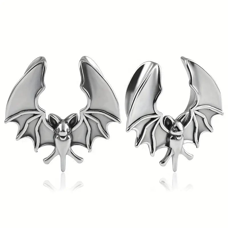 Take flight with these full-body bat saddle plugs, crafted in stainless steel. Featuring outstretched wings and fine detailing, these plugs are made for creatures of the night. The saddle-style design offers a comfortable fit, while the bold bat silhouette makes a statement from every angle.