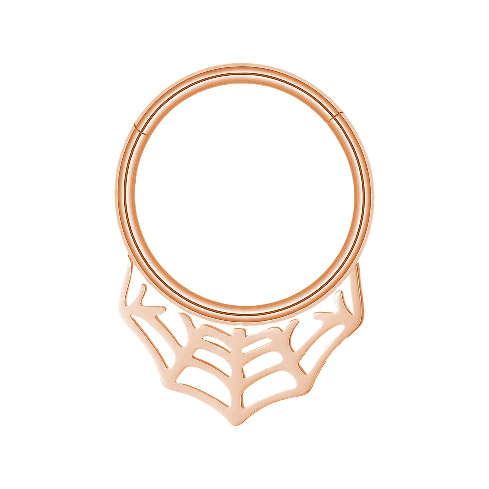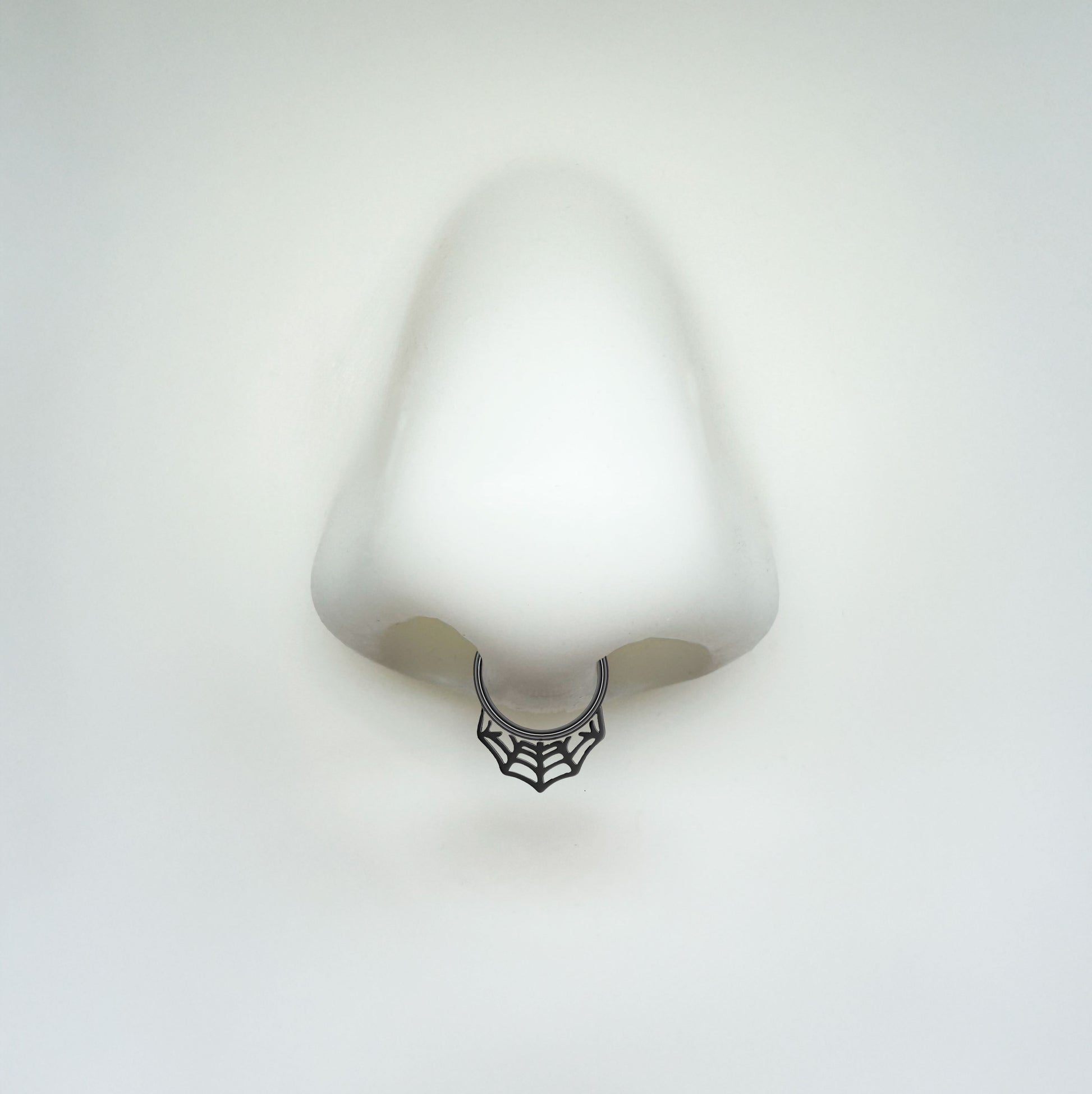 Get caught in a web of beauty with the Spiderweb Septum Clicker, a striking piece for those who love dark, intricate designs. Crafted from surgical steel, this 16-gauge septum ring features a finely detailed spiderweb, adding the perfect gothic touch to your aesthetic.